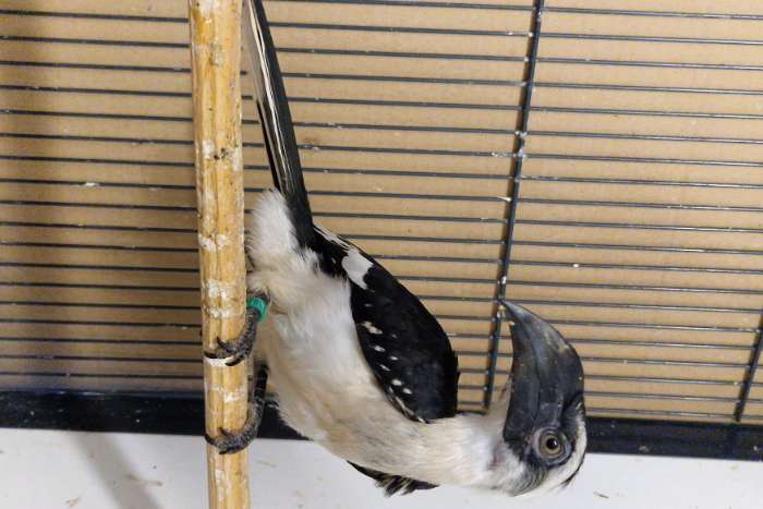 De pop zit bij ons in een volière samen met mooie toerako's. Zo zijn er ook mooie Roodkuiven en Witwangen beschikbaar.