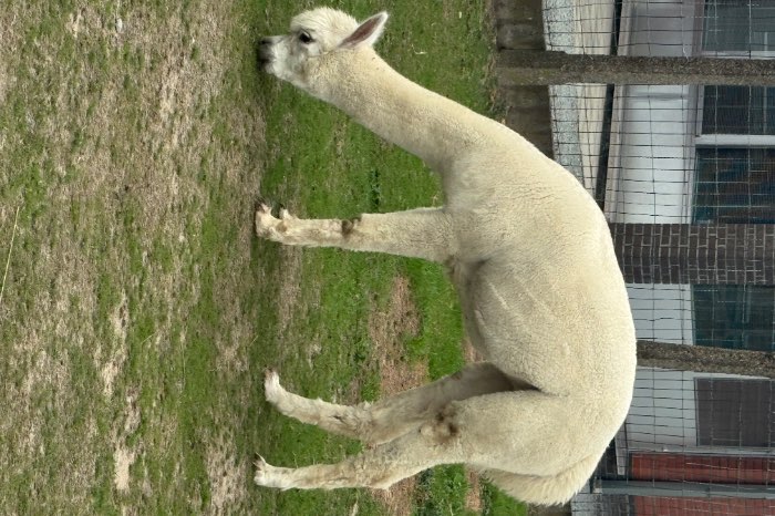 2 witte merrie alpaca’s te koop beiden van 2024 alle inentingen op 8/05/2025 gekregen handtam en in uitstekende gezondheid