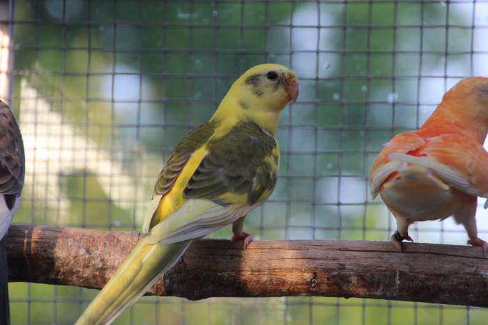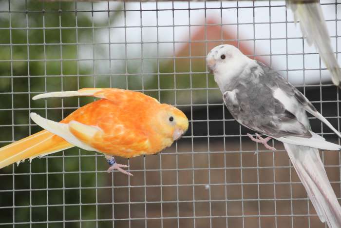 Bonte roodrug man split oranje split blauw. Geringd 2025.