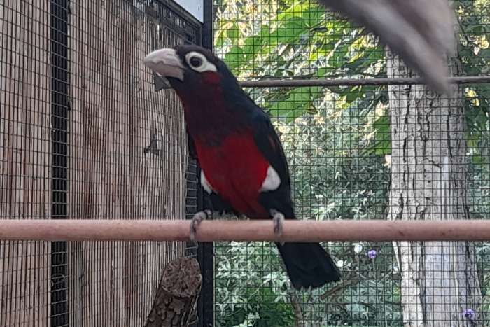 1-1 Lybius bidentatus, onverwant en vast geringd met dna jongen van dit jaar. Nog niet helemaal op kleur.