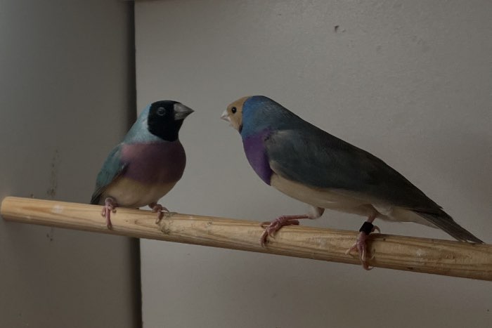 Te koop koppel blauwe gouldamadine. Vogels zijn van 2024. Mooie gezonde vogels zitten buiten met nachthok. Prijs 35€ per stuk Tel 0618972209