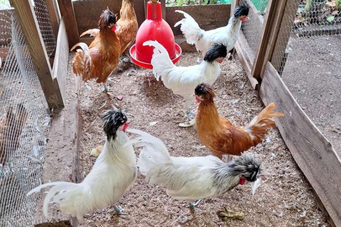 Grote Hollandse kuifhoenders 3-6 goud zwartkuiven en 4-9 witte zwartkuiven.