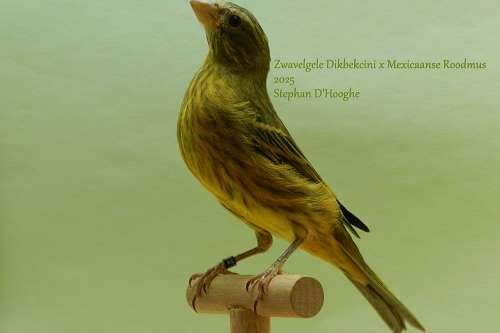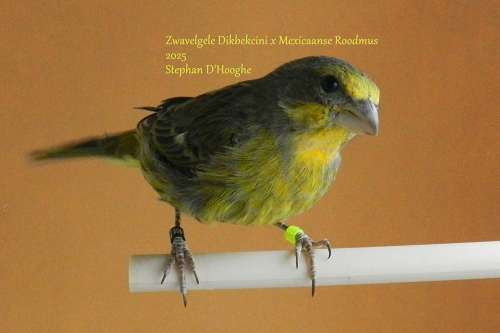 Hybriden (kruisingen, bastaarden) van zwavelgele dikbekcini x Mexicaanse roodmus en geelbuikcini x Mexicaanse roodmus. Alleen per koppel beschikbaar (50€/koppel).