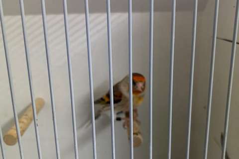 Prachtige bastaard putter/kanarie correct geringd 2025 fluiten de hele dag zitten in onverwarmde schuur Mannen 75 euro Nederland kweeknummer 5725