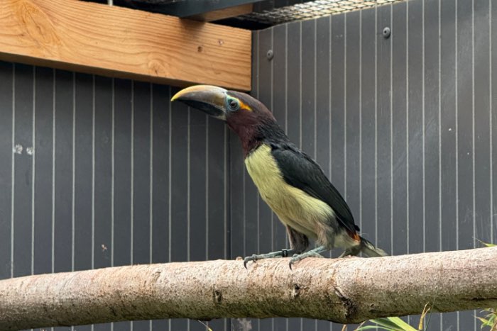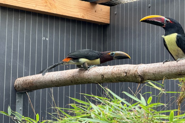 Te koop, Een mooie jonge pop van de groene arassari. Het betreft een vast geringde pop van 2025. Ze is in een goede conditie uit een ruime buitenvoliere.