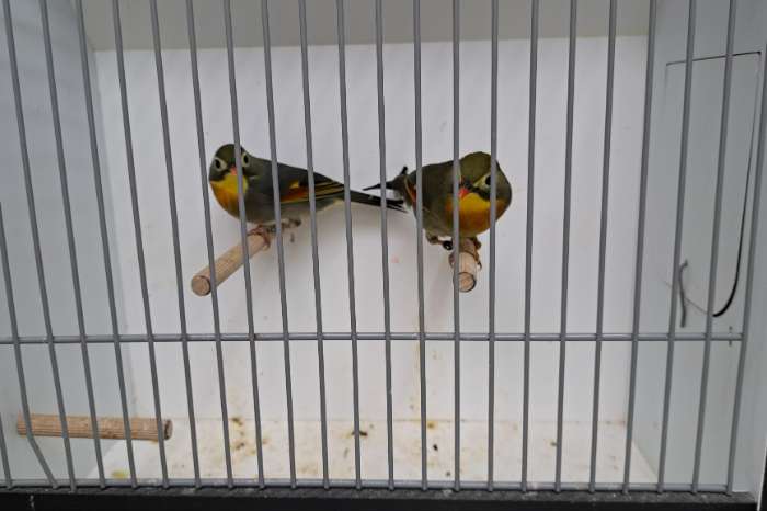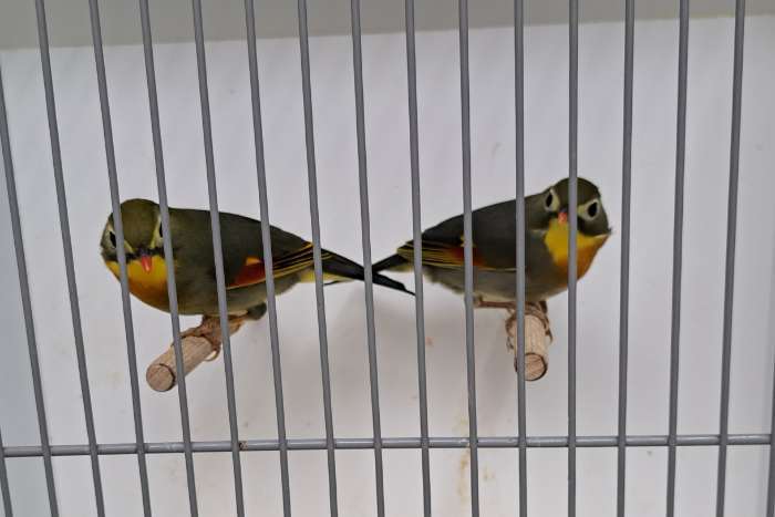 Koppel Japanse nachtegalen uit buitenvoliere.