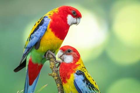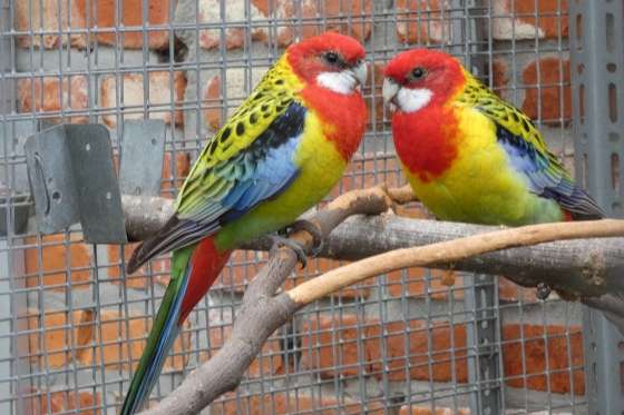 Jonge eigen kweek zuivere wildkleur prachtrosella ‘s of goudmantel rosella’s. Dus geen split of kansplit voor een mutatie, wel zuiver wildkleur. Geen goudmantels met doorgedreven selectie op een zo geel mogelijke rug waarbij het zwart op de rug vervaagt en er zelfs geel in de zwarte vleugelbalk zit. Wel vogels met een gele omzoming rond een nog duidelijke zwarte en scherp afgetekende rug tekening en een zwarte vleugelbalk met weinig of geen geel erin en die dus de oorspronkelijke wilde prachtrosella of goudmantelrosella dicht benaderen. Fors van formaat en geen rode uitloop op de gele buik (alle ouders hebben een mooi afgeronde rode borst). Vast geringd. Heb nog 1 verwant koppel zitten (zijn dus broer en zus van elkaar) en worden dus eventueel ook los verkocht. Sommige foto’s zijn genomen door vogelfotograaf Iggino Van Bael maar het zijn wel foto’s van mijn vogels (de ouders), de andere foto’s laten betreffende 2 jongen zien. Prijs 40 € per stuk.