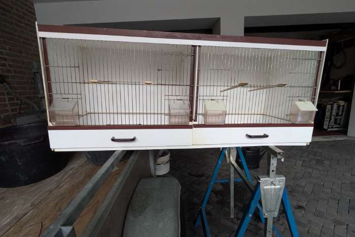 Te koop 24 stuks kunststof broedkooien alle 24 kooien in een koop totaal prijs , In prijs verlaagd €860, de afmeting per stel breed 102 cm hoogte 42 cm diepte 34 cm, incl. zitstokken en voederbakjes, incl. 12 stuks baby kooitjes , Per stel te koop voor € 80 per stel van 2 broedkooien, je mag een redelijke bod doen . De kooien zien er perfect uit zie foto's .