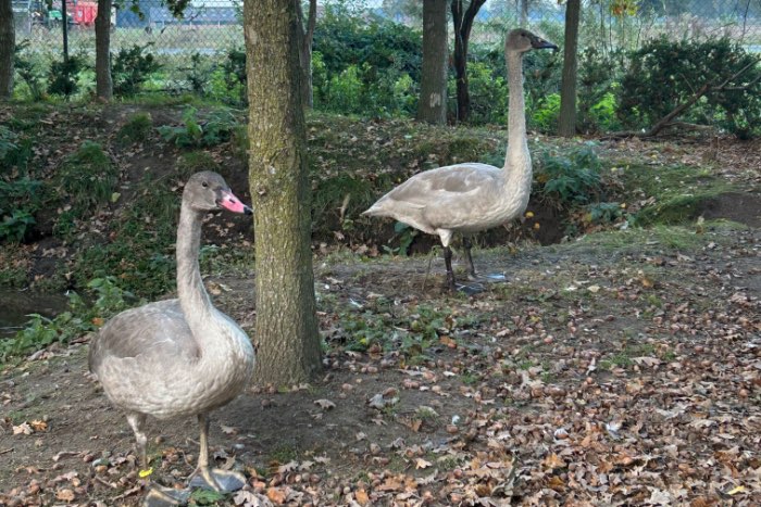 Koppel trompet zwanen 2025 geringd vliegend en onverwant. Met dna