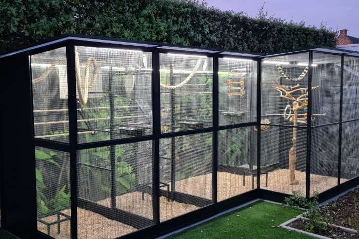 De aansluitingen van de LED tubes zijn simpel met een mofje en PVC elektra buis weg te werken en daardoor te beveiligen tegen het sloopgedrag van de meeste vogels, (Ara's, Kaketoes en andere vergelijkbare "grotere slopers" uitgesloten). (link naar website)
