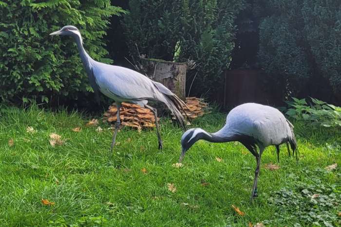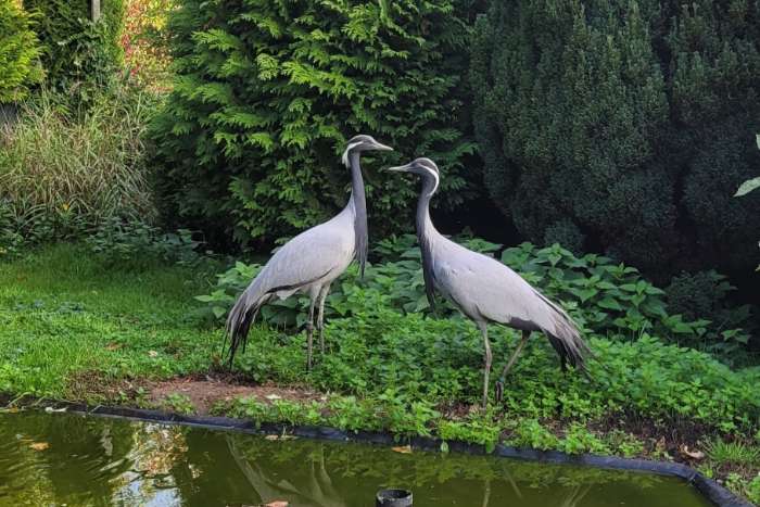 Jufferkraanvogels 1-1, broed 2014/2013 met DNA, met vaste voetring, rechte tenen en goed in de veren. Prijs € 800,00.