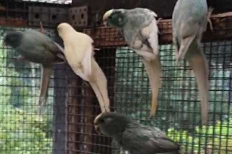 9 Mannen 25 forse vogels gezoomd in misty ,bont.blauw.creme