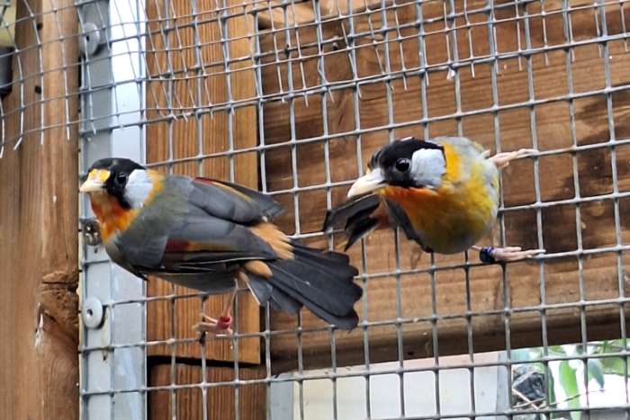 Te koop mooi onverwant koppel Zilveroornachtegalen rode soort 2024 correct geringd zitten buiten in de volière prijs 850 euro .
