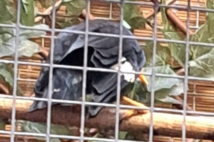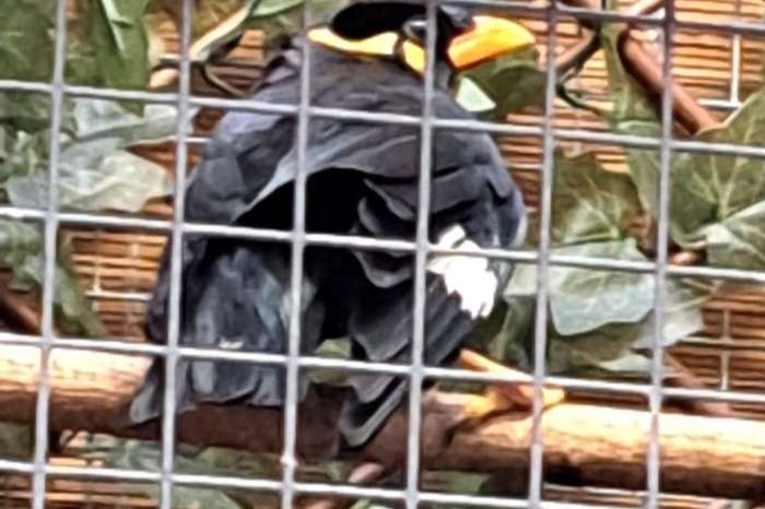Op de foto valt te zien dat ze een vleugel wat rond weg zet.