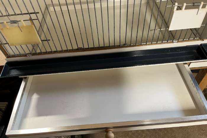 Kweekkooi zo goed als nieuw, slechts één seizoen gebruikt, twee kooien beschikbaar - type kistkooi multiplex gelamineert - kweekkooi lxdxh = 100x65x65 - Nieuwprijs per stuk €205,= - opdeelbaar in twee delen - met ladensysteem om eenvoudig te reinigen - met morsgoot - met toebehoren zoals stokken, voerbakjes, badjes en drinkflessen