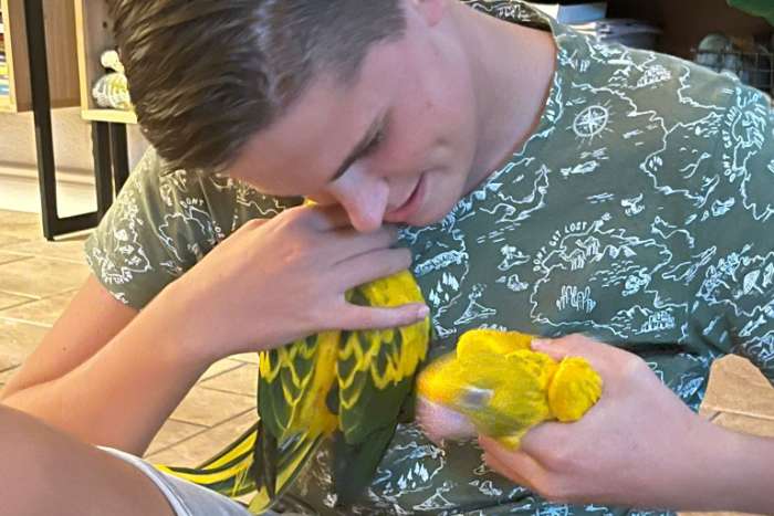 Handopfok en supertam koppel Goudparkieten van dit jaar, zijn volledig handopfok, zitten nu in de huiskamer en zijn gewend aan kinderen. Uiteraard voorzien van DNA, vaste voetring en gele Cites papieren.