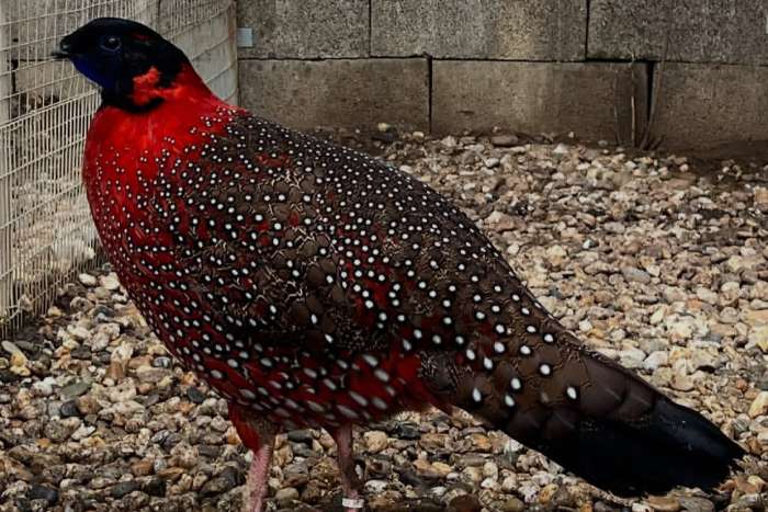 01 Tragopan Satyra, Ringed a prett fir en neit Heem.