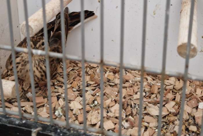 Mooi veldleeuwerik van 2025 correct geringd met D.N.A vogel zit koud.