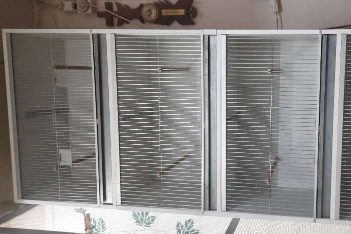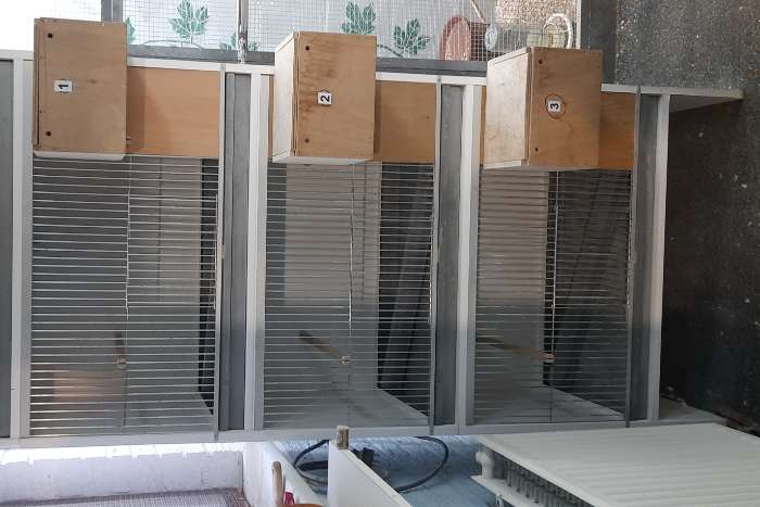 Te koop: 4 kweekkooien in goede staat. Heb ze voor grasparkieten gebruikt. Hoogte: 220 cm. Breedte: 82 cm. Diepte : 40 cm. Is 1 geheel. Inclusief: . Metalen lades . Verwijderbare voorfronten . Verlichting [excl. voeding] . 3 broedblokken voor aan de buitenkant . Morsgoten . 3 drinkflesjes Almelo - Windmolenbroek