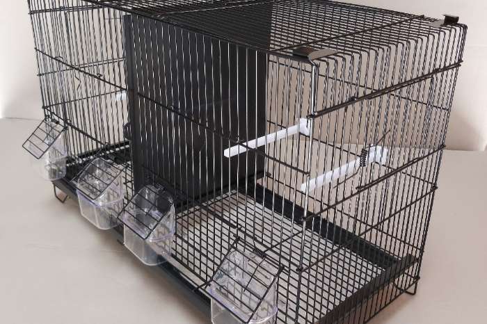 De kooi wordt geleverd inclusief bakjes, stokjes, bodemrooster een tralie en dichte middenschuif.