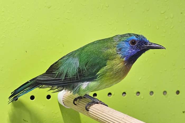 Verkaufe 1,0 Blue-masked Leafbird (Chloropsis venusta). Oder im Tausch gegen andere Singvögel.