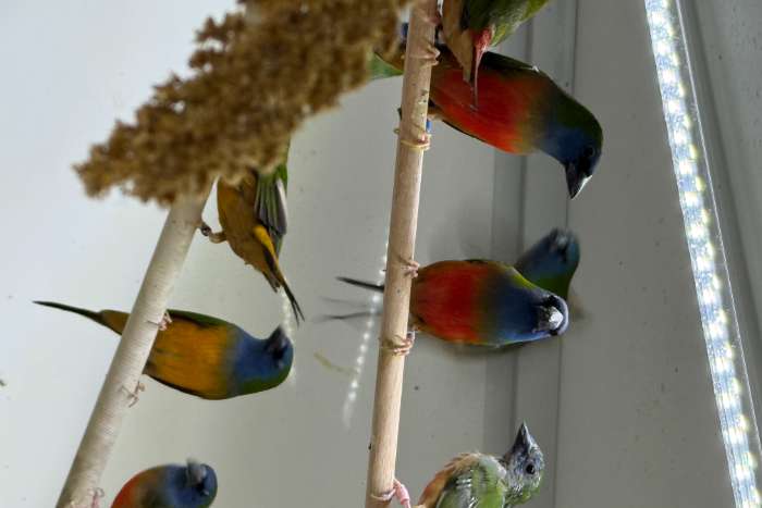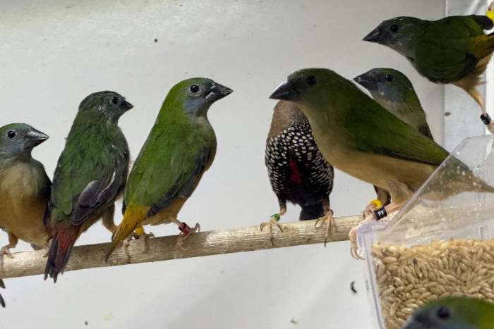 10-10 red or yellow bellied pintail parrot finches (erythrura prasina) all close banded 2024-2025