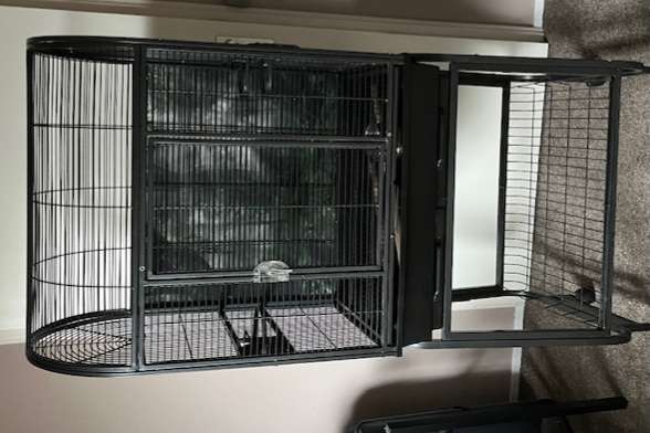 Mooie grote parkieten kooi van metaal. Met een mooie achterwand ertegen. Nieuwprijs 265 euro. Amper gebruikt