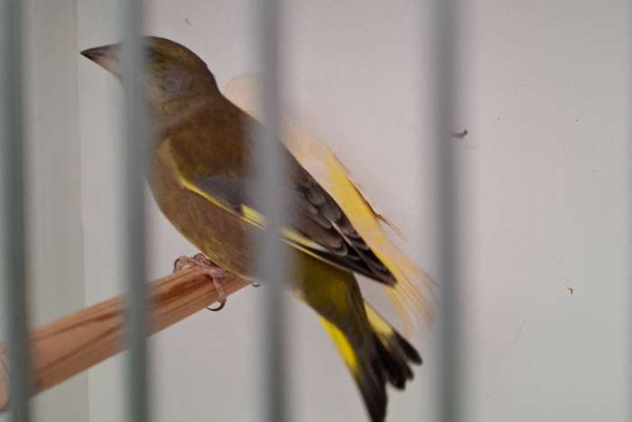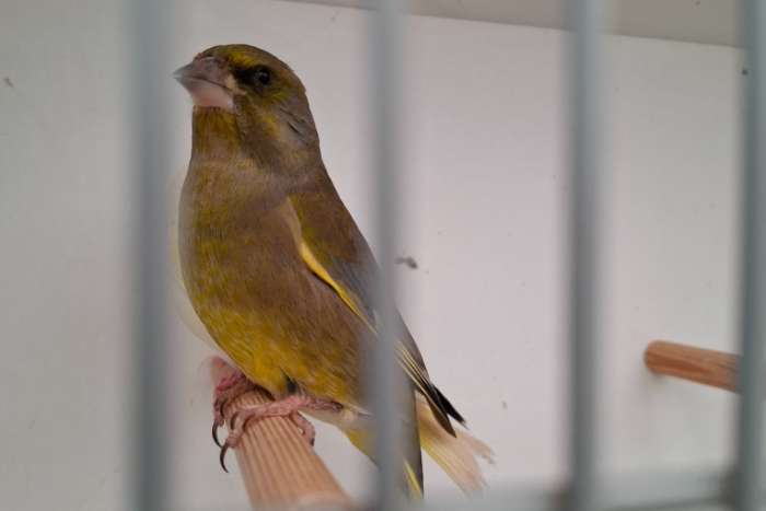 Koppel groenlingen 2025 correct geringd. Wildkleur x satinet zitten in de buiten volière.