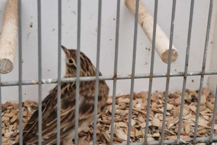 Mooi veldleeuwerik man van 2025 correct geringd met D.N.A vogel zit koud.