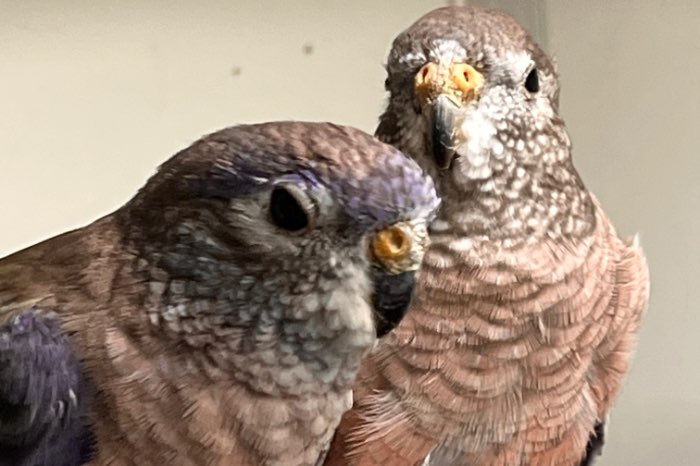 - mannen en poppen [mei-juli 2025] - een onverwant koppel - Zitten onverwarmd Vogels zijn geringd (NBvV - 8UHB), de eerste rui hebben zij achter de rug. Mooi op kleur. Zij verblijven in een onverwarmd binnenhok. Vaste prijs € 20,00. (Graag eigen vervoershok/transportkist meenemen) Verkoop niet op zondag.
