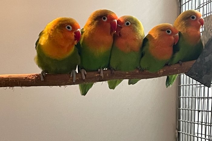 3 jonge Agapornis Fischeri, pas uitgevlogen.