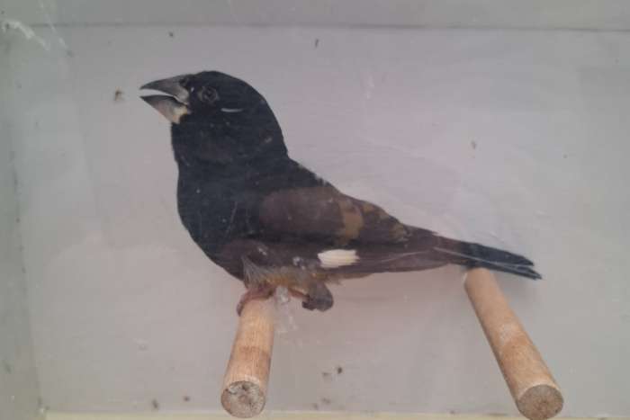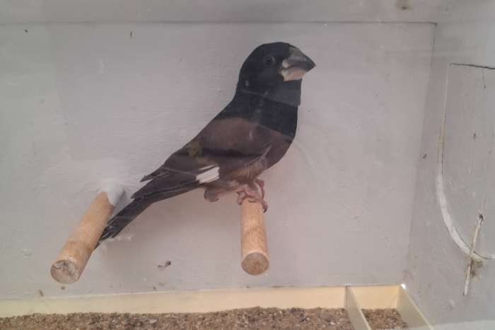 Ik heb deze vogel als siervogel in mijn voliere hij heeft een probleemje met zijn rechterpootje maar kan het nog goed gebruiken de vogel is voor de rest tip top gezond Kweek nr ac080
