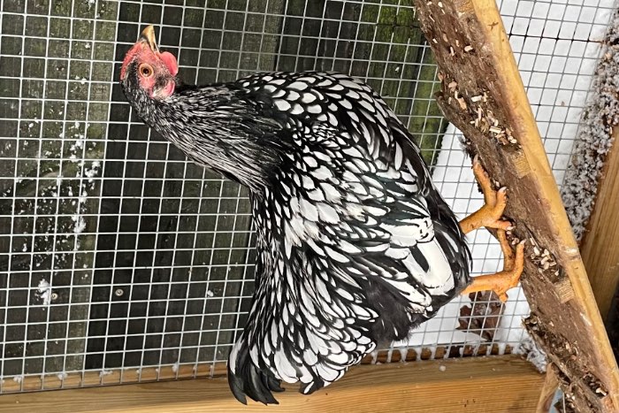 Wyandotte krielhaan, zwartgrijs gezoomd. Fraai raszuiver exemplaar van 16 weken oud. Eventueel te ruilen voor wyandotte hen van ongeveer zelfde leeftijd.