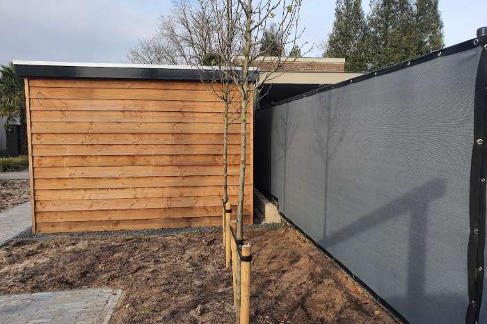 Bent u op zoek naar een snelle oplossing om het zicht te ontnemen tussen kooien / erfafscheiding. Neem dan contact op. Wij maken deze schermen op maat ( tegen zeer nette prijzen: 80 % winddoek € 5.50 incl btw pm2 90% privacy doek. € 6.50 incl btw pm2 100% zichtdoek € 9.25 incl btw pm2 U maakt het doek eenvoudig aan uw gaas of andere ondergrond m.b.v de door ons voorziene ringen. Bij vragen kunt u ook altijd bellen of mailen! Andrew van Berlo AB netten B.V 0627330021