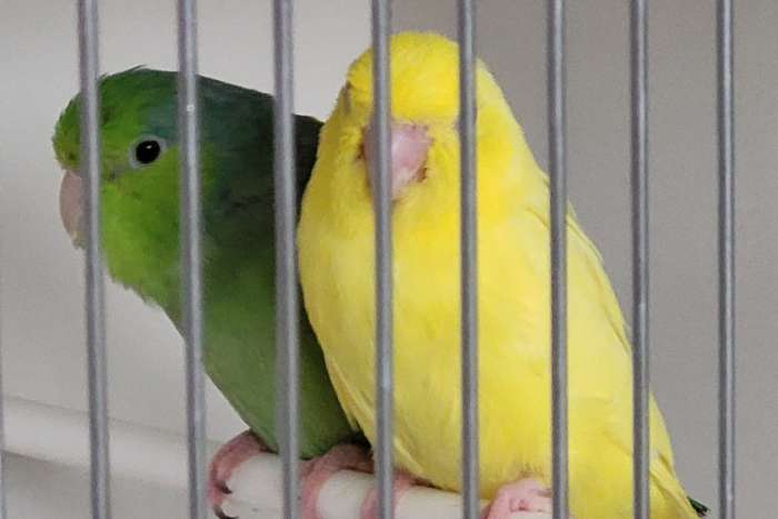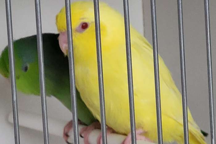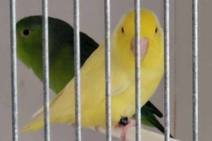 Te koop : 2 onverwante koppels forpus Coellestis grijsrugsperling lutino x split lutino . Alsook nog 1 losse lutino man . Allen geringd 2025 en van goede kwaliteit . Vogels zitten op 12° .