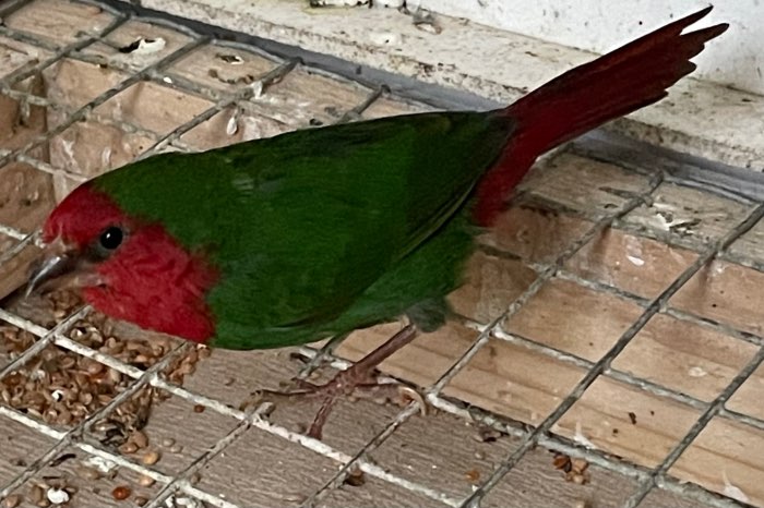 1 mooie roodkoppapegaaiamadine man van 2025 uit de buitenvolière.