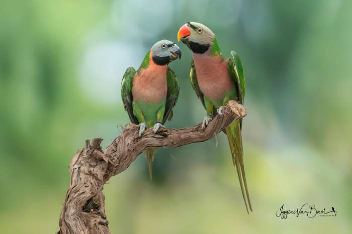 2.1 Psittacula alexandri fasciata (rozeborstbaardparkiet), vaste voetring, verwant, uit 2025.