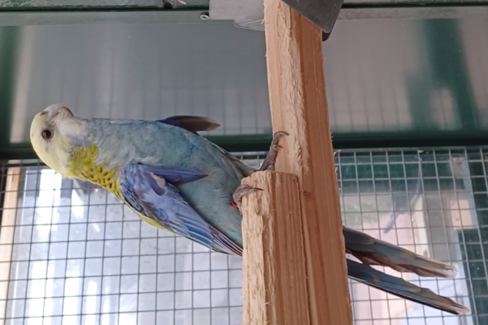 Te koop mooie fors en geringde Bleekkop rosella pop met donkerblauwe borst zonder rode aanslag.