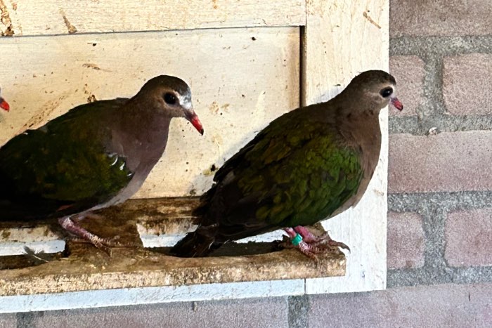 Te koop, mooie gezonde Groenvleugelduif duivin van 2025. Geboren eind zomer is nog op kleur aan het komen. Vaste prijs 35,- euro.