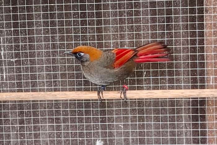 1,0 roodstaartgaailijster (Trochalopteron Milnei), Rotschwanzhäher, vom 2023, geschlossen beringt, top fit und gesund.