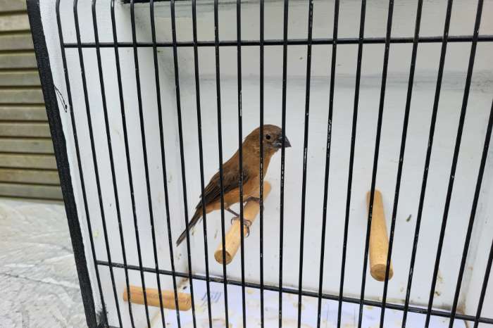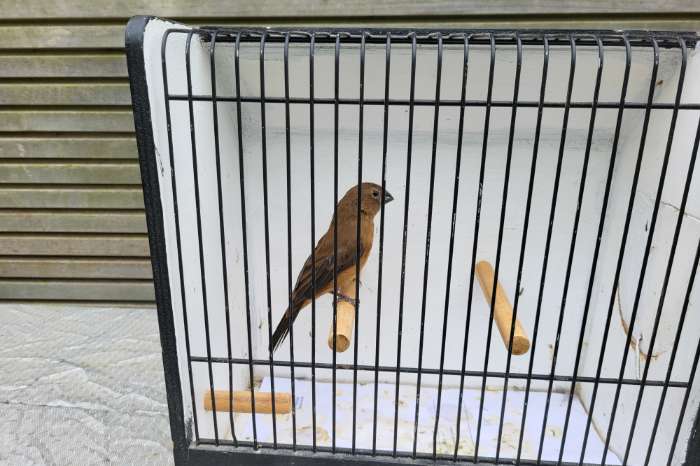 Vogel zit buiten en iis winter hard en heeft DNA papieren