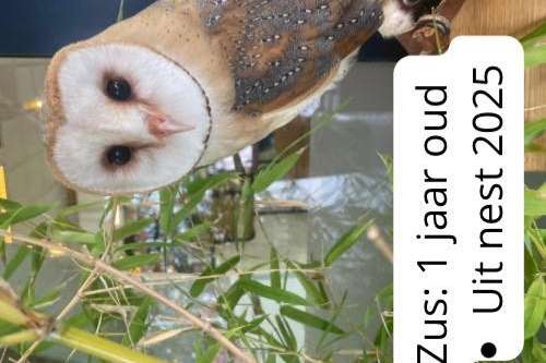 Te koop aangeboden: kerkuil jongen, geboren eind december. De uilen zijn handtam opgevoed en gewend aan menselijk contact. Ze zijn geringd en de officiële papieren zijn aanwezig.