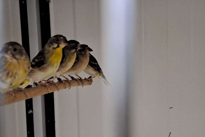 Jonge Citroenborst edelzangers geringd zijn verwant van elkaar wegens stoppen van deze soort