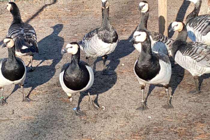 Brandganzen van diverse leeftijden beschikbaar.