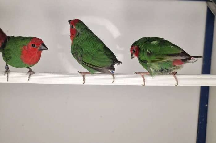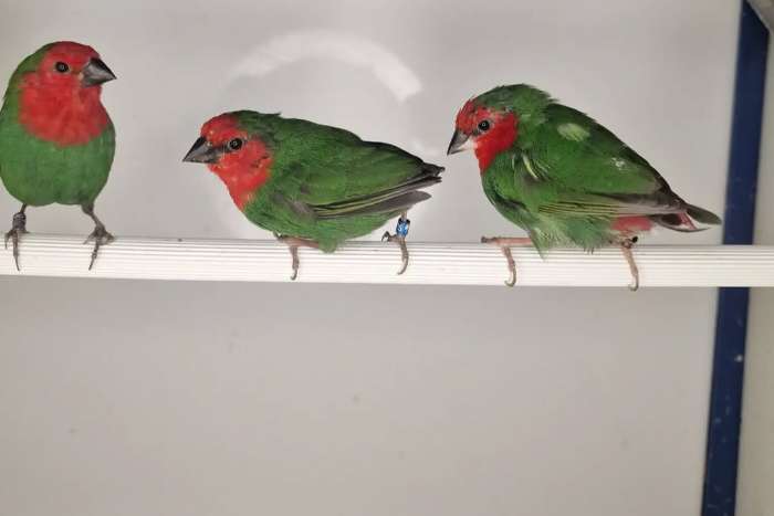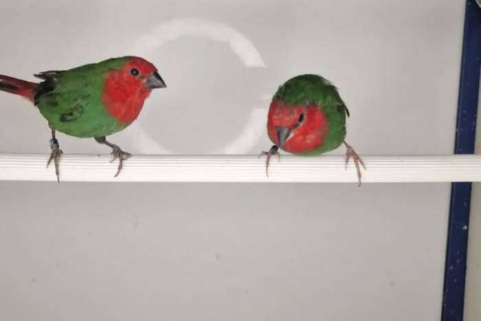 2 .1 Prachtig gekleurde vogels. Erythrura psittacea