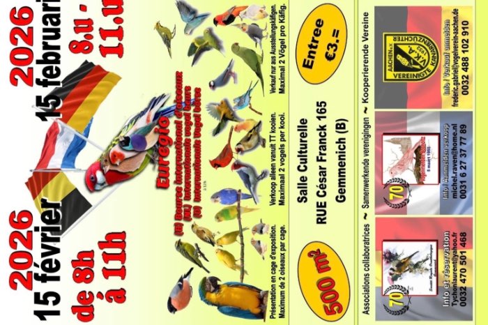 Een mooie vogelmarkt op Zondag 15 - 2 -2026 van 8 uur tot 11 uur