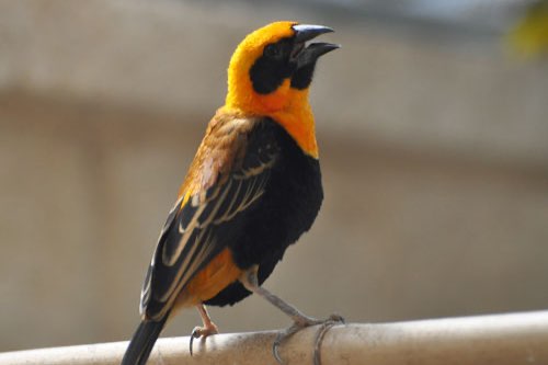 Kolonie vlammenwevers uit de buitenvoliere