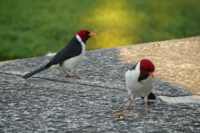 Aves cardenales macho y hembra listas para un nuevo hogar. Los extranjeros pueden recogerlo en el próximo espectáculo de Extramadura.