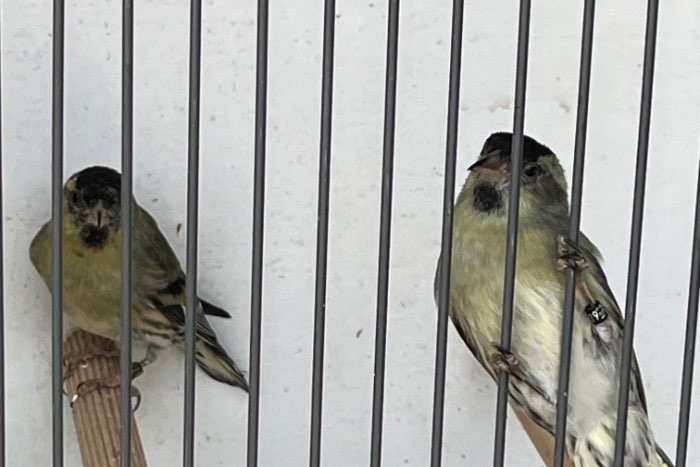 sijs man ivoor split voor isabelivoor (oude benaming) van 2025. Forse vogel met mooie bef en tekening. Zijn reserve kweekmannen. Zitten koud.