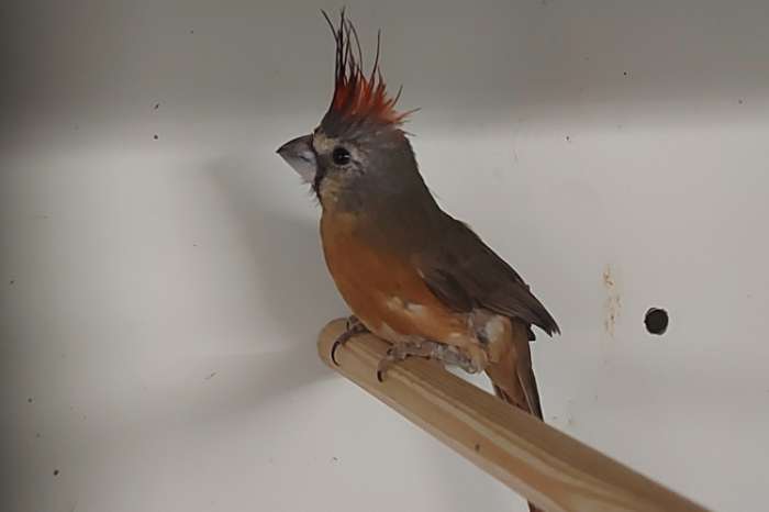 Te koop prachtige vermiljoen kardinaal pop van 2024. Vast geringd.
